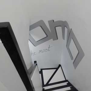 Gli espositori in alluminio evocano ombre di danzatori che si stagliano sui muri bianchi, le luci principali sono costituite da un intreccio di neon colorati che spicca sul soffitto sempre bianco, su un grosso monitor scorrono immagini di gruppi che danzano.